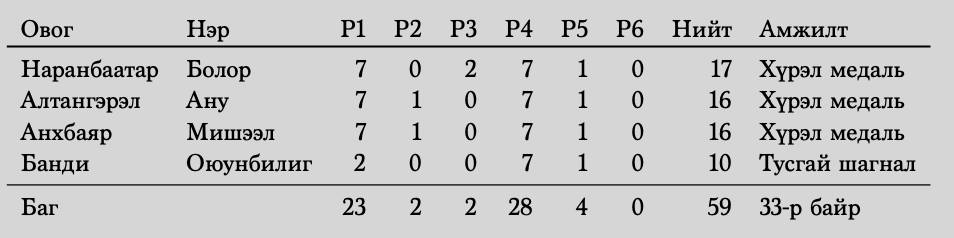 Европын Охидын 14-р Олимпиад дөнгөж сая дүнгээ гаргалаа. Манай баг 3 хүрэл медаль, 1 тусгай шагнал авч, нийт 56 улсаас 33-р байранд орлоо. Энэ нэр хүндтэй олимпиадад амжилт гаргасан 11а ангийн сурагч Н.Болор халуун баяр хүргэе.