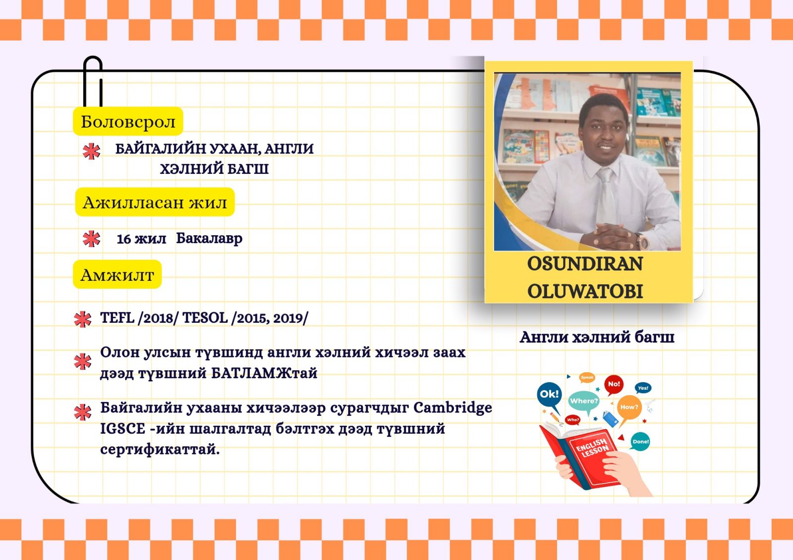 Монгол хэл бичиг уран зохиолын багш